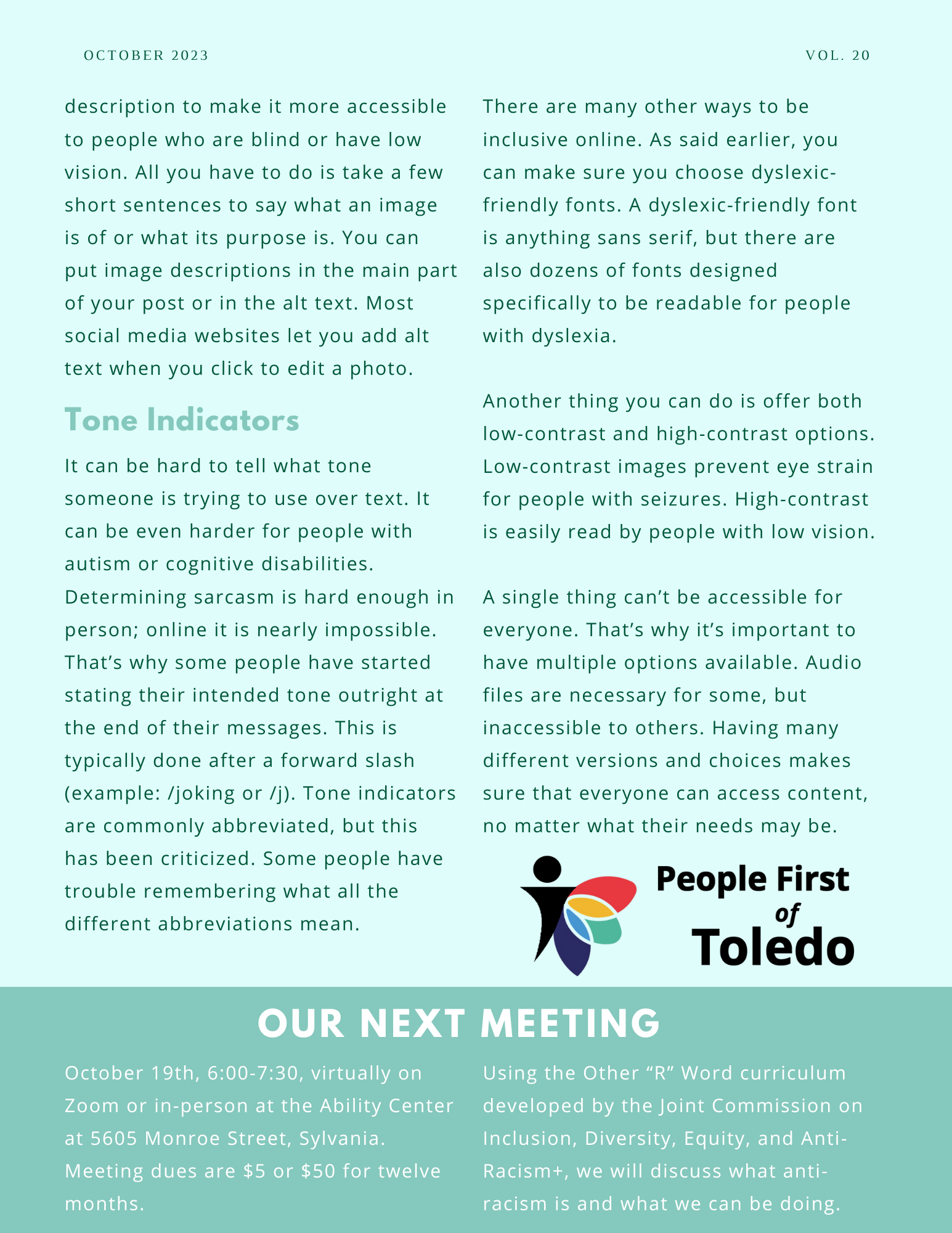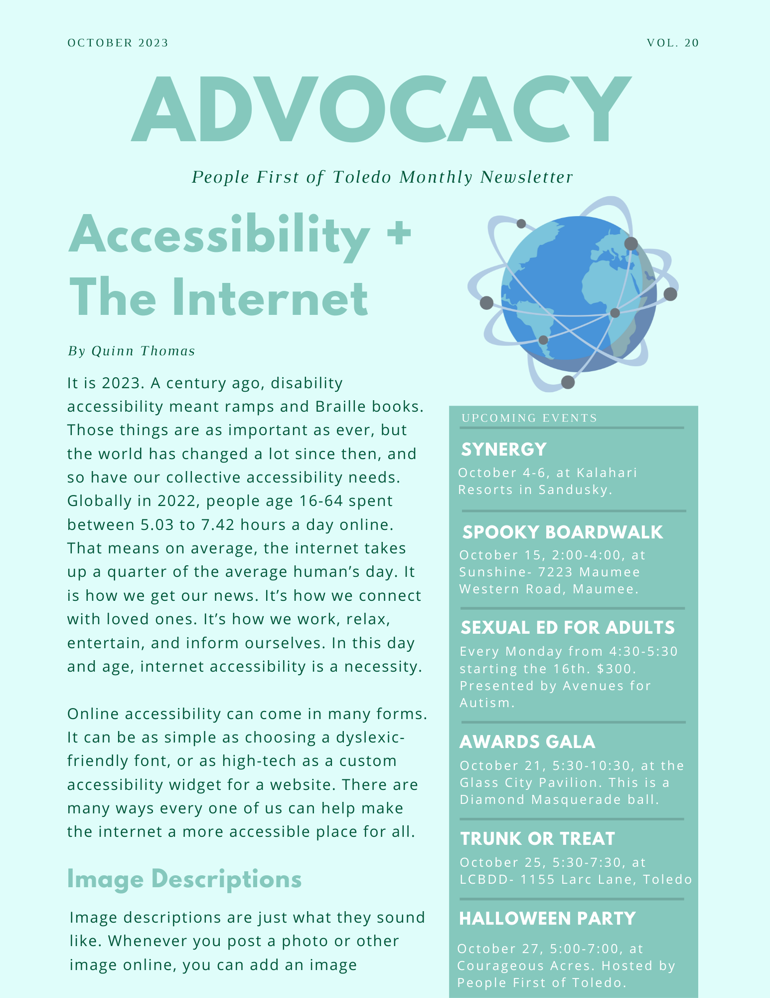 Advocacy Newsletter| Nov 2, 2023 Accessibility + The Internet To view this article as a PDF, click here. Sign up for our emails. Previous Next Search for: Search Categories Advocacy Newsletter Blog Posts Camp Information Camp Updates Raffle