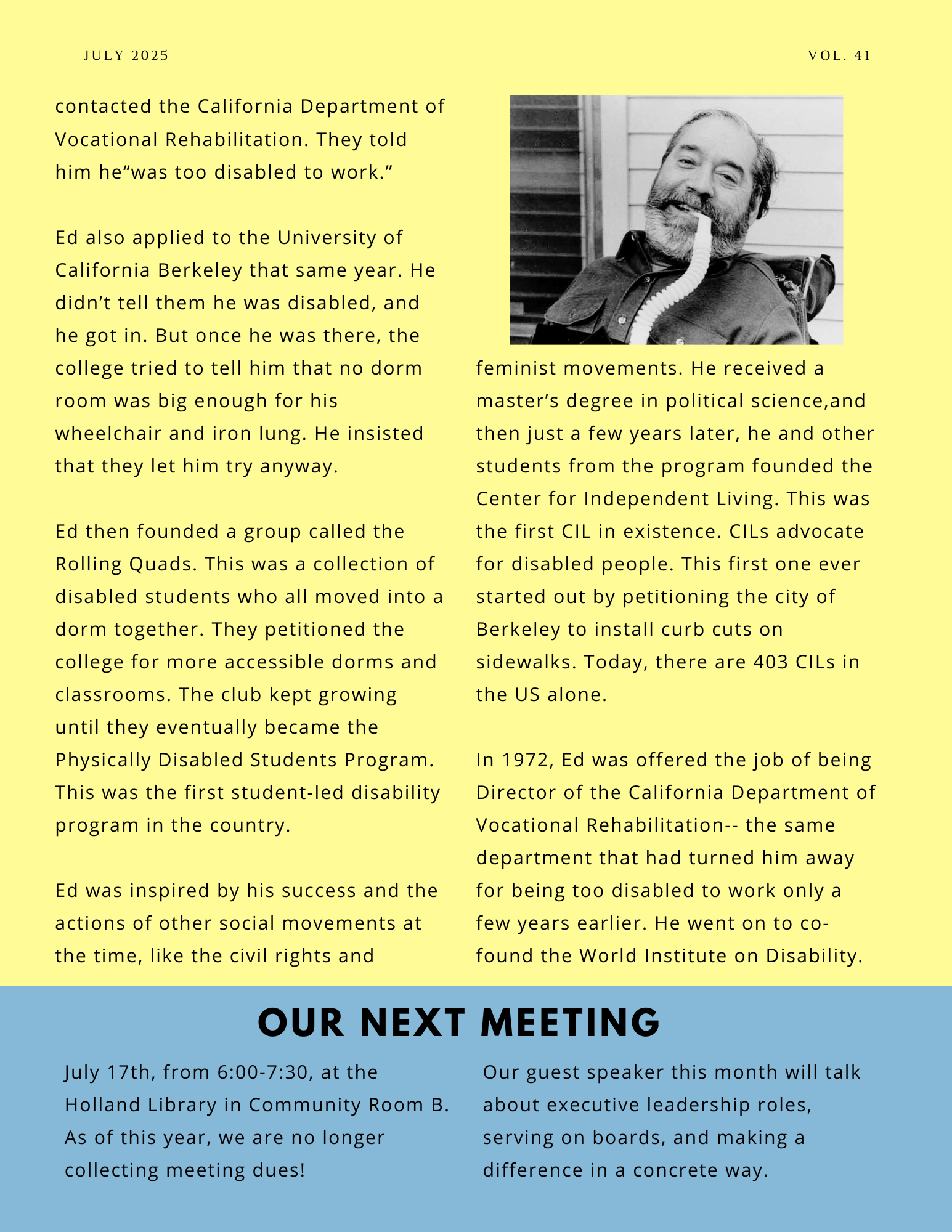 Advocacy Newsletter| Jul 1, 2025 Disabled Figures: Ed Roberts Previous Next Search for: Search Categories Advocacy Newsletter Blog Posts Camp Information Camp Updates Raffle