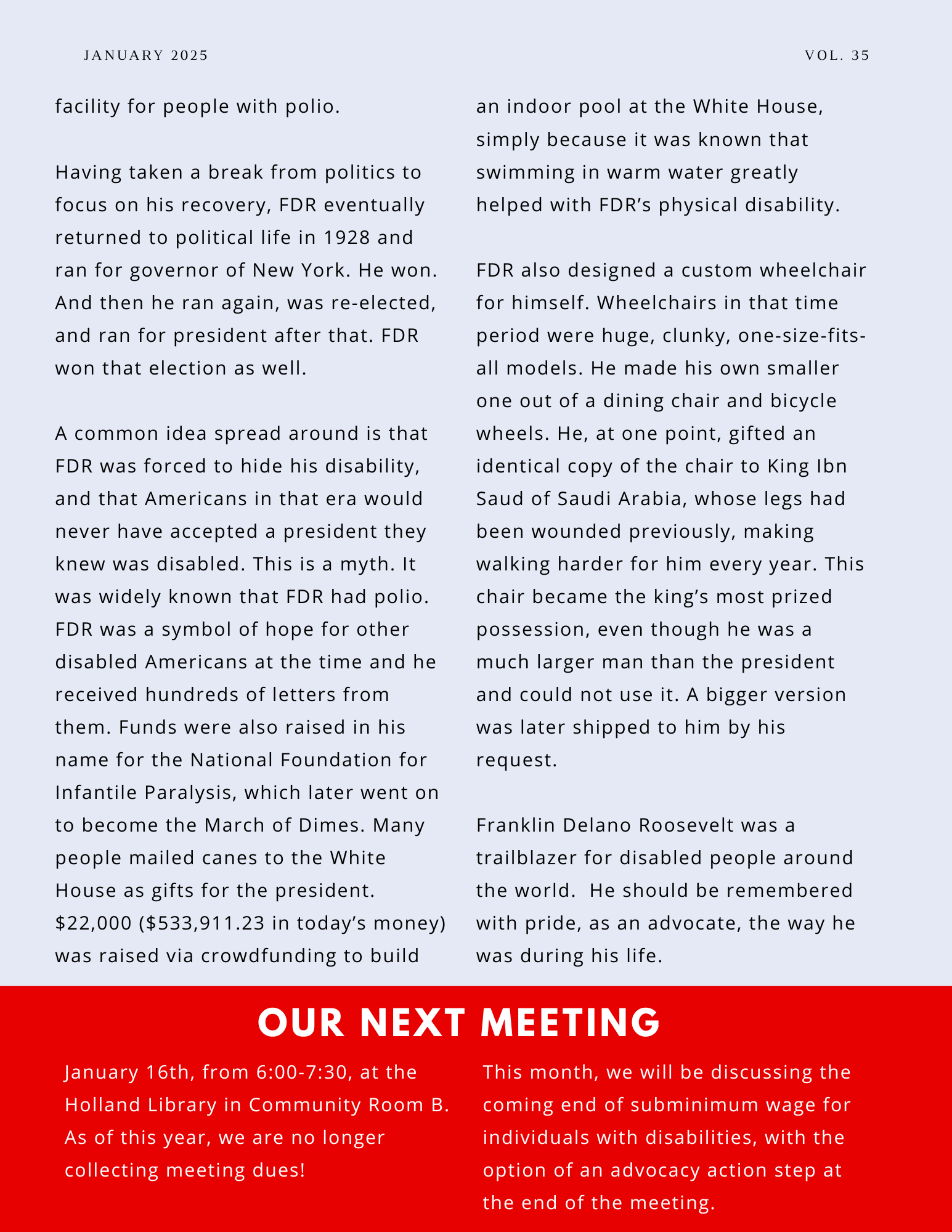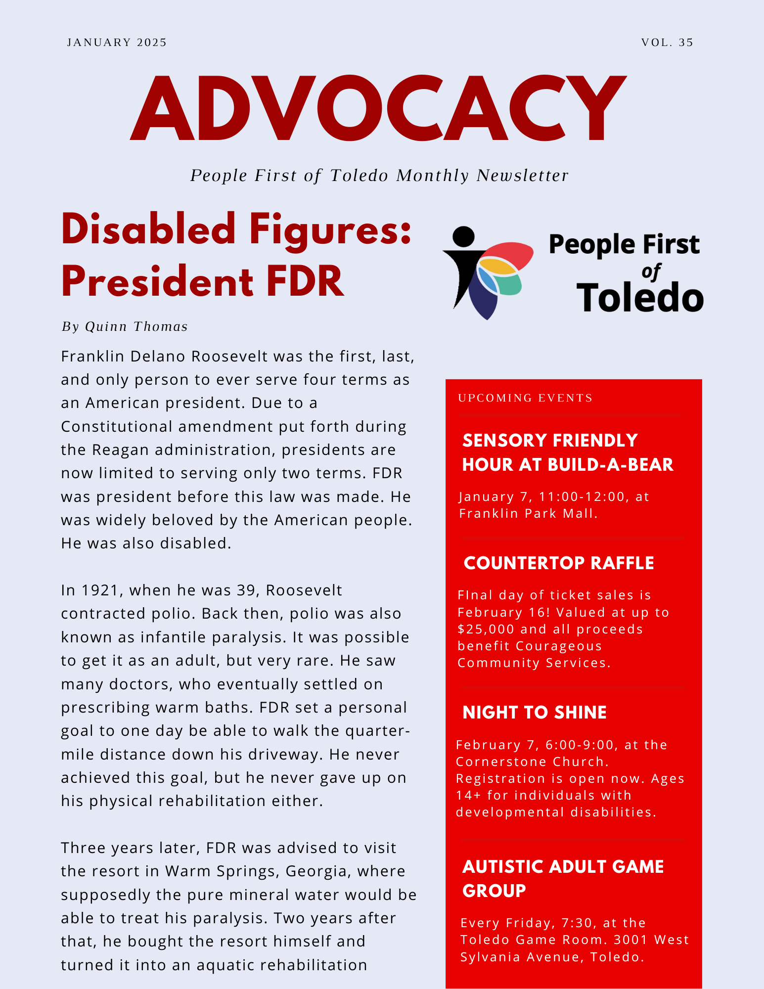 Advocacy Newsletter| Jan 3, 2025 Disabled Figures: President FDR To view this article as a PDF, click here. To sign up for our emails, click here. Previous Next Search for: Search Categories Advocacy Newsletter Blog Posts Camp Information Camp Updates Raffle