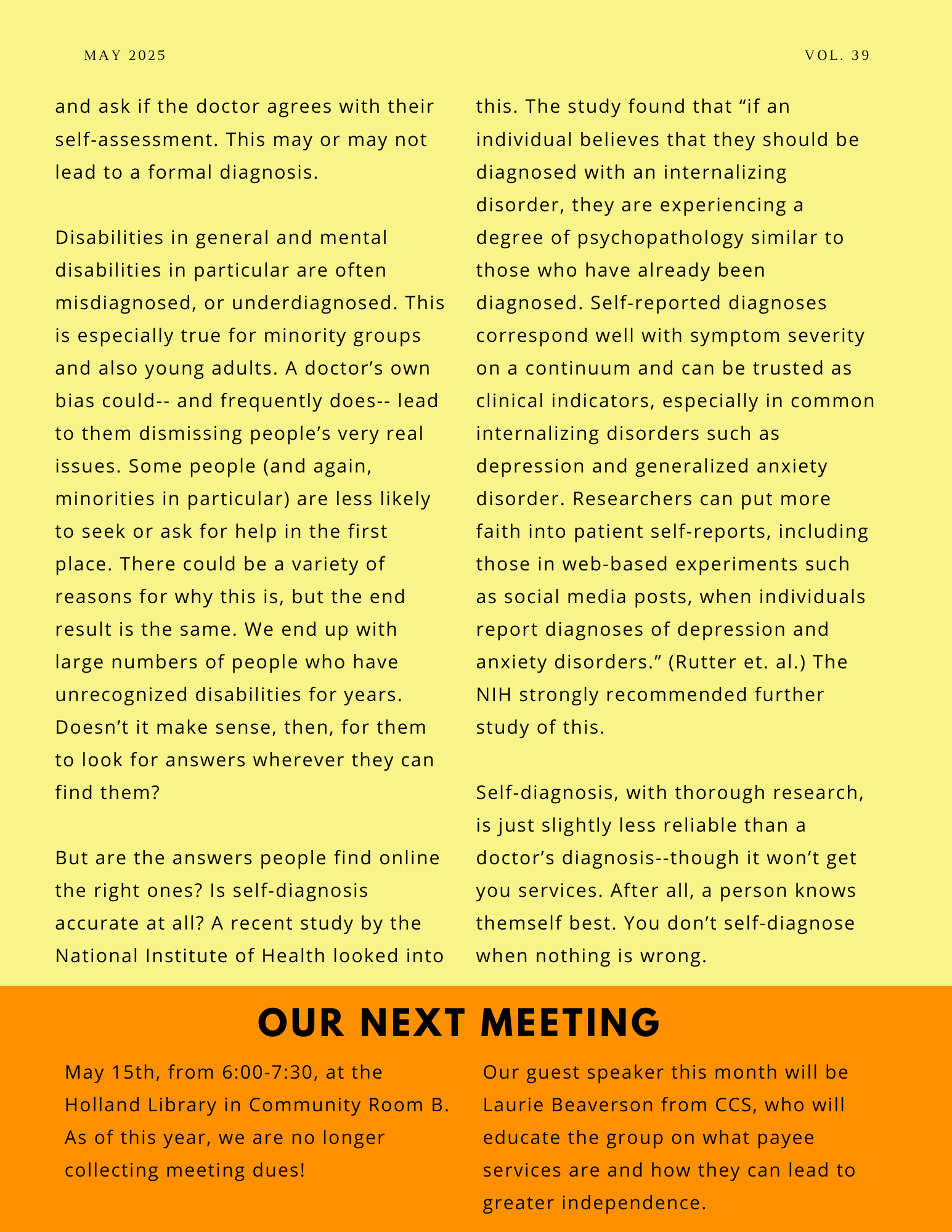 Advocacy Newsletter| May 5, 2025 Self-Diagnosis Previous Next Search for: Search Categories Advocacy Newsletter Blog Posts Camp Information Camp Updates Raffle
